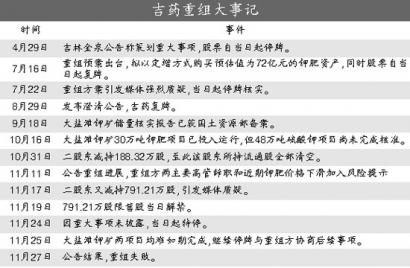 两个月后,重组失败,吉林制药无奈复牌,股价迅速大跌,至2008年2月初,股价最低跌至7.46元,跌幅近40%,不少投资者损失惨重。