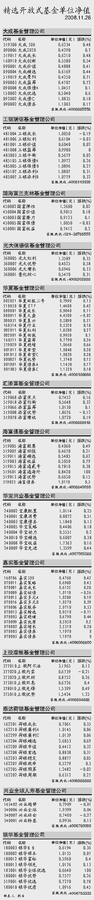 精选开放式基金单位净值
