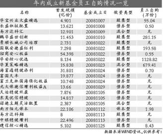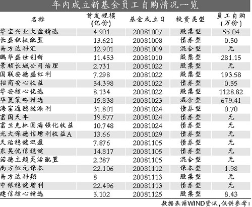 与之形成鲜明对比的是,10月初成立的长盛积极配置基金,长盛基金公司员工自购的数量不到0.5万份;而年内成立的招商安心收益、鹏华丰收、海富通稳健添利两只基金,员工自购的份额也均不到1万元。