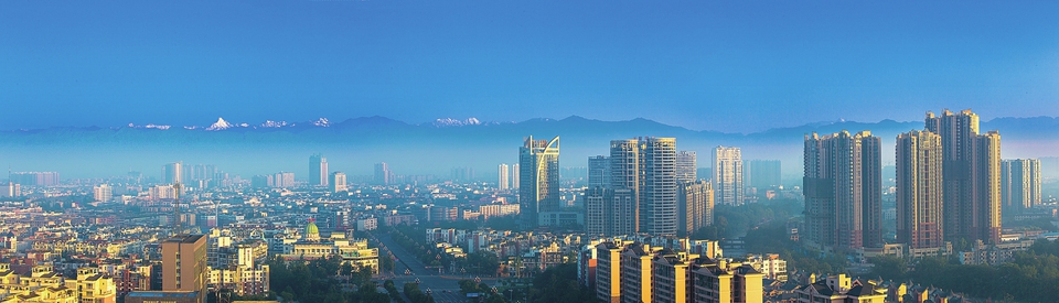 沿成都市光华大道一路向西,就到了一座绿意盎然的公园城市——成都市温江区。在天朗气清的日子里开窗远眺,越过葱郁的林木与高耸的楼宇,能看到巍峨的西岭雪山。“窗含西岭千秋雪”,千年绝句里的“绝景”,又穿越时光隧道浮现于斯。