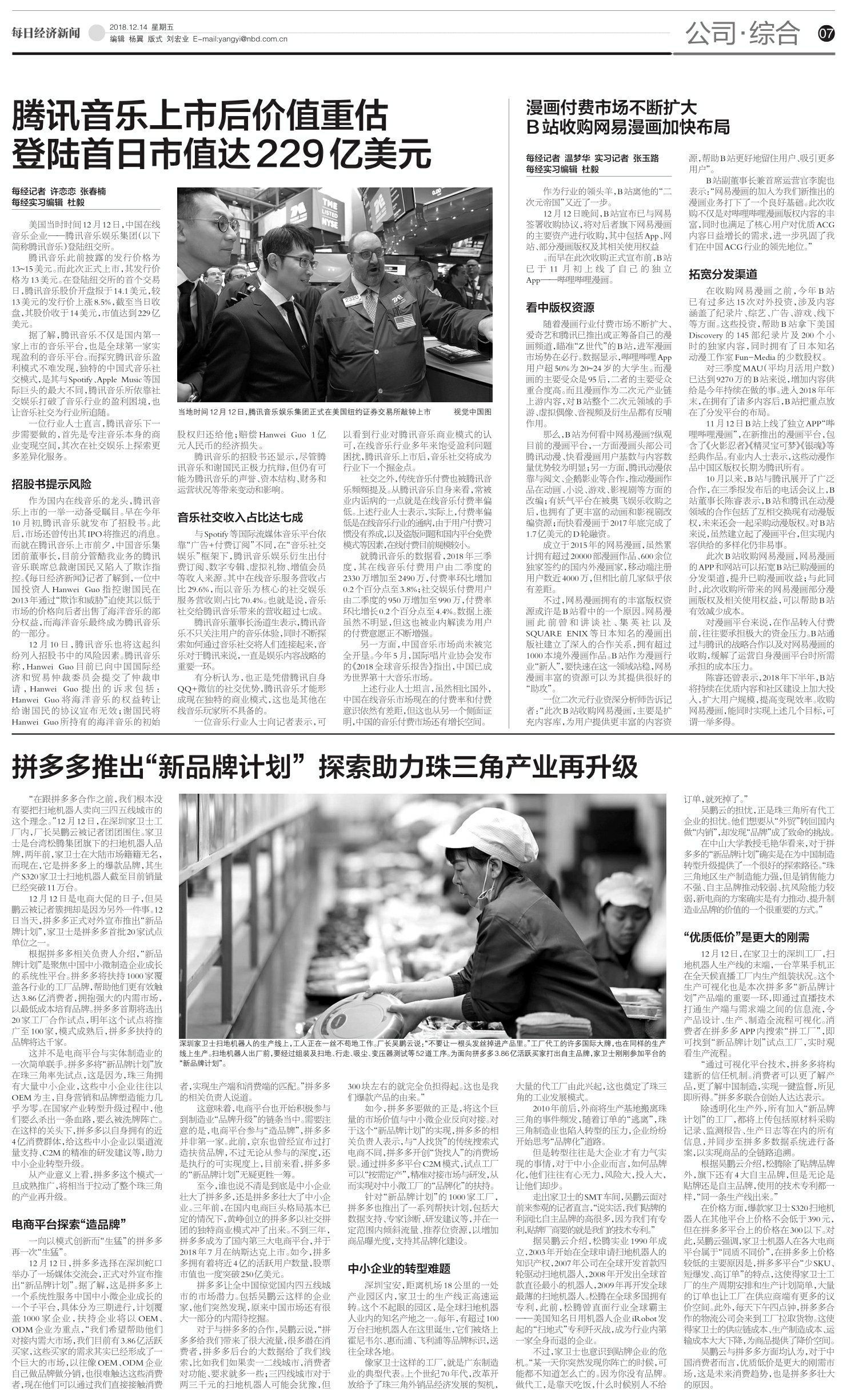 腾讯音乐上市后价值重估 登陆首日市值达229亿美元