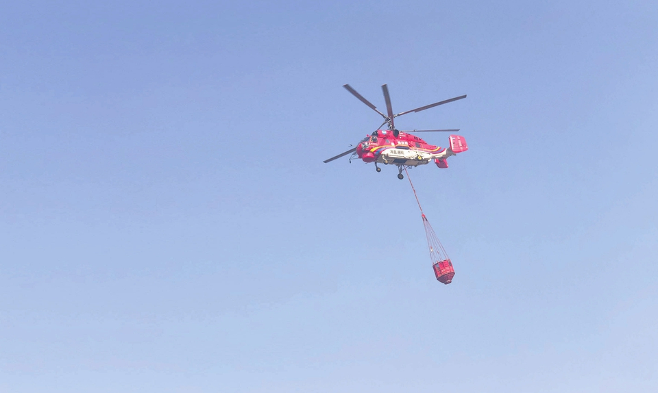 4月1日,灭火直升机从西昌机场起飞前往火灾现场 新华社图