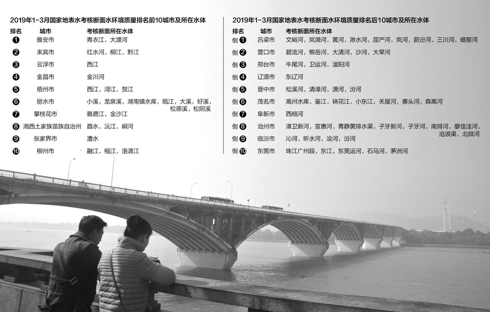 5月7日,这份榜单第一次公布。2019年一季度,全国地级及以上城市国家地表水考核断面水环境质量方面,雅安、来宾、云浮等30个城市的排名最好,吕梁、营口、邢台等30个城市则排名最后;而在变化情况方面,四平、长春、中山等30个城市排名最好,吕梁、营口、朔州等30个城市排名最后。