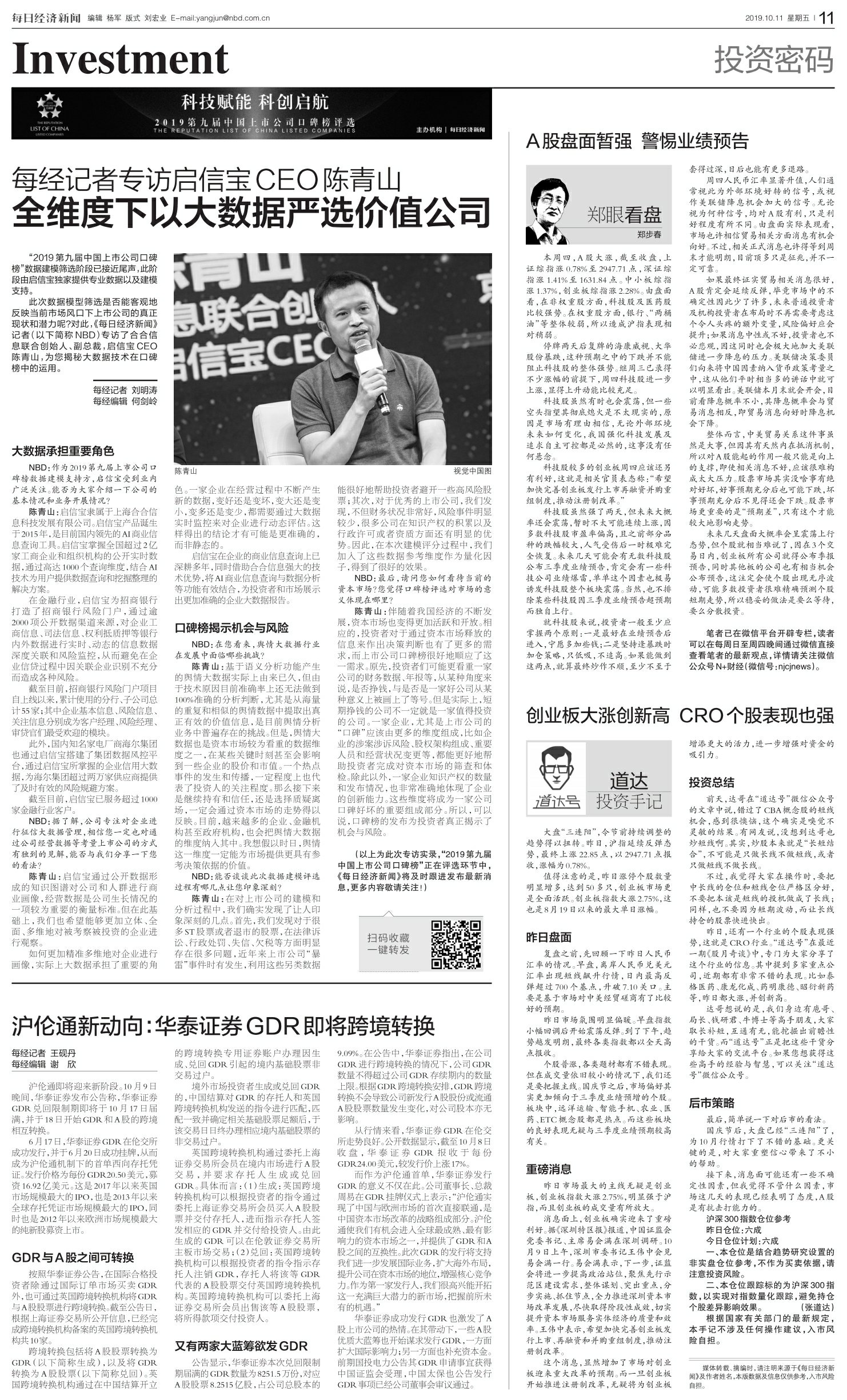 每经记者专访启信宝CEO陈青山:全维度下以大数据严选价值公司