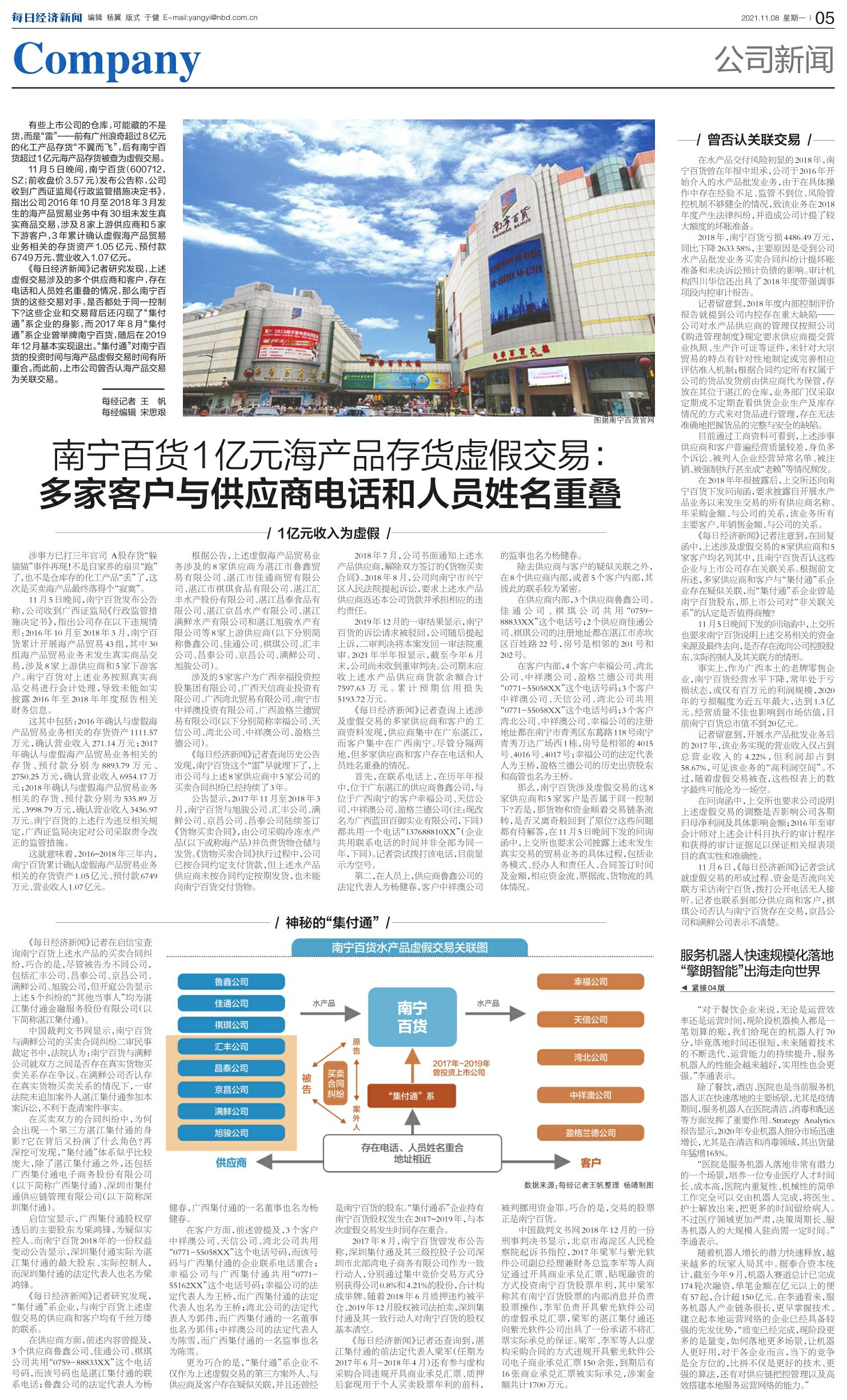 南宁百货1亿元海产品存货虚假交易:多家客户与供应商电话和人员姓名重叠