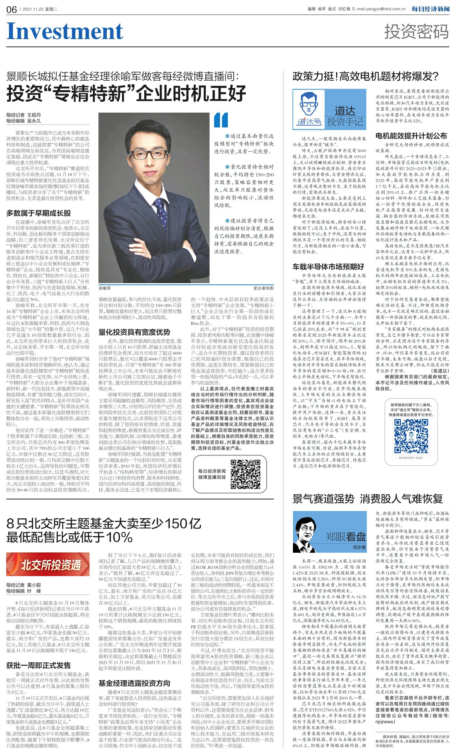 景顺长城拟任基金经理徐喻军做客每经微博直播间:投资“专精特新”企业时机正好