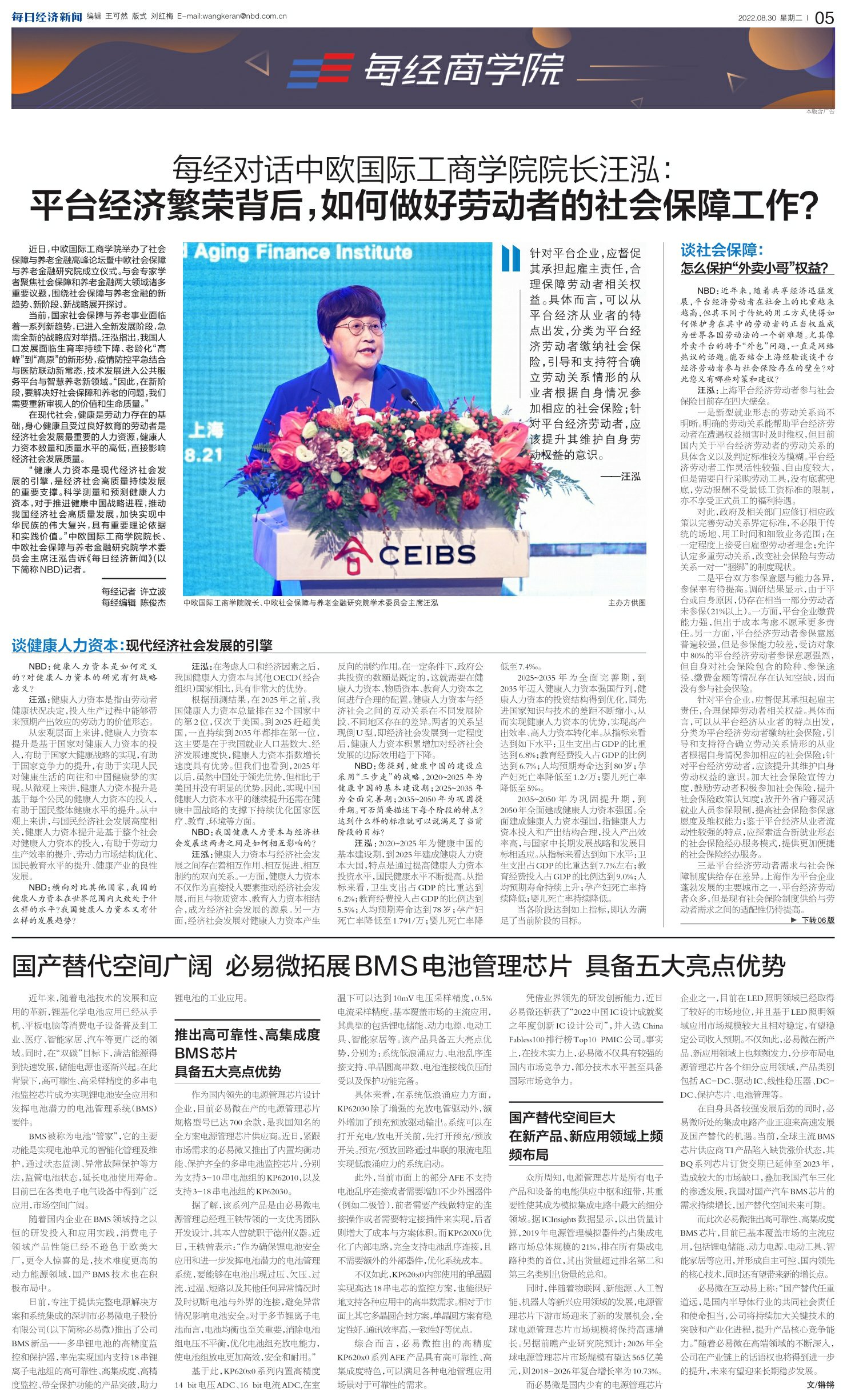 每经对话中欧国际工商学院院长汪泓:平台经济繁荣背后,如何做好劳动者的社会保障工作?