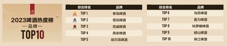 2023啤酒热度榜(品牌)TOP10重磅发布 青岛啤酒夺魁、燕京第四