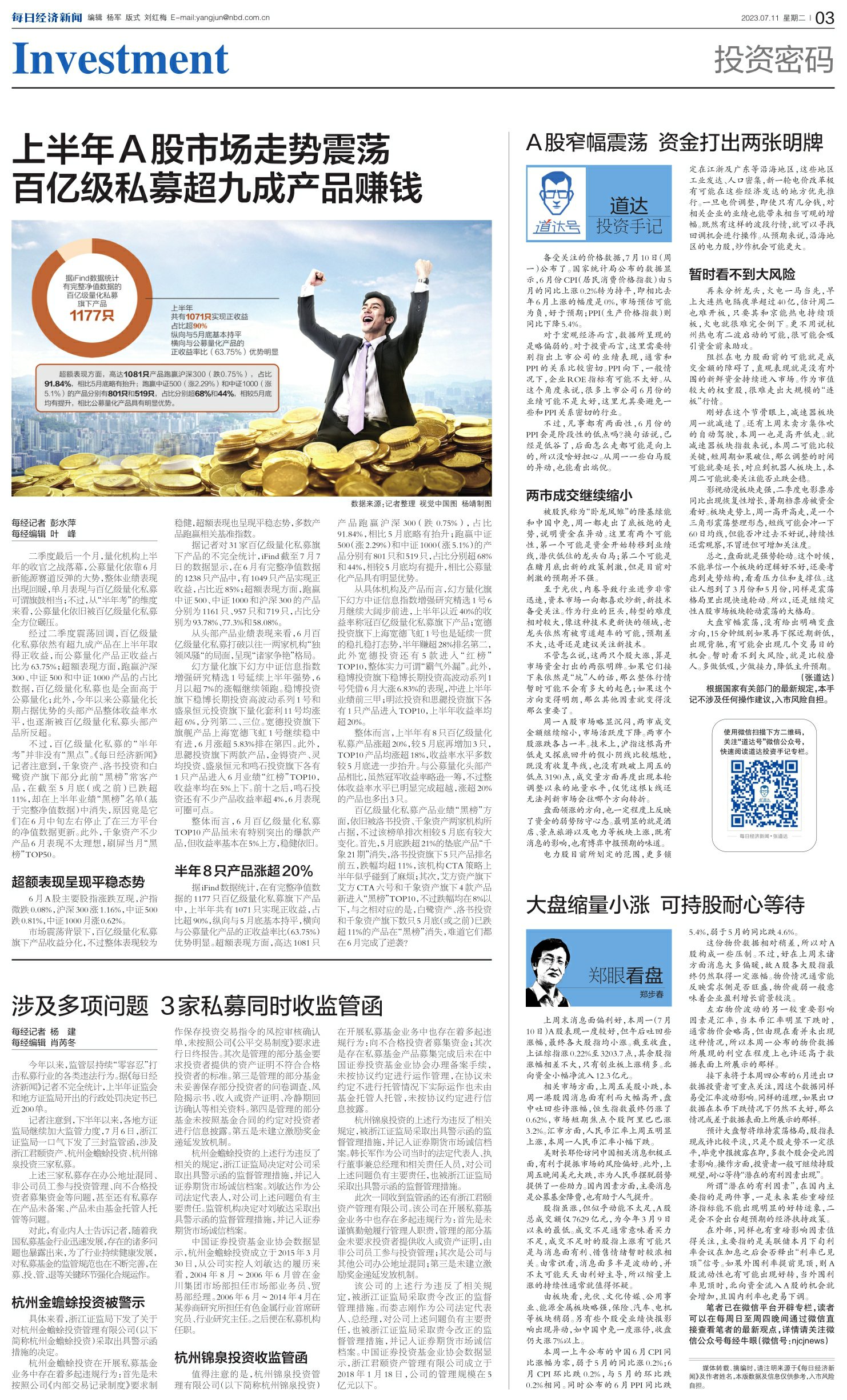 上半年A股市场走势震荡百亿级私募超九成产品赚钱