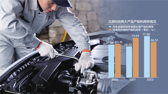 2020~2022年,泛源科技汽车金属零部件表面处理产能利用率为61.99%、58.52%、77.80%,汽车内外饰件产能利用率为63.16%、74.64%、66.51%,整体产能利用率相对不高。泛源科技解释称,为了保障生产旺季的正常生产,公司需要留有一定的产能空间,同时下游客户在审核供应商资格时,要求公司产能相对于订单量留有一定的产能富余。