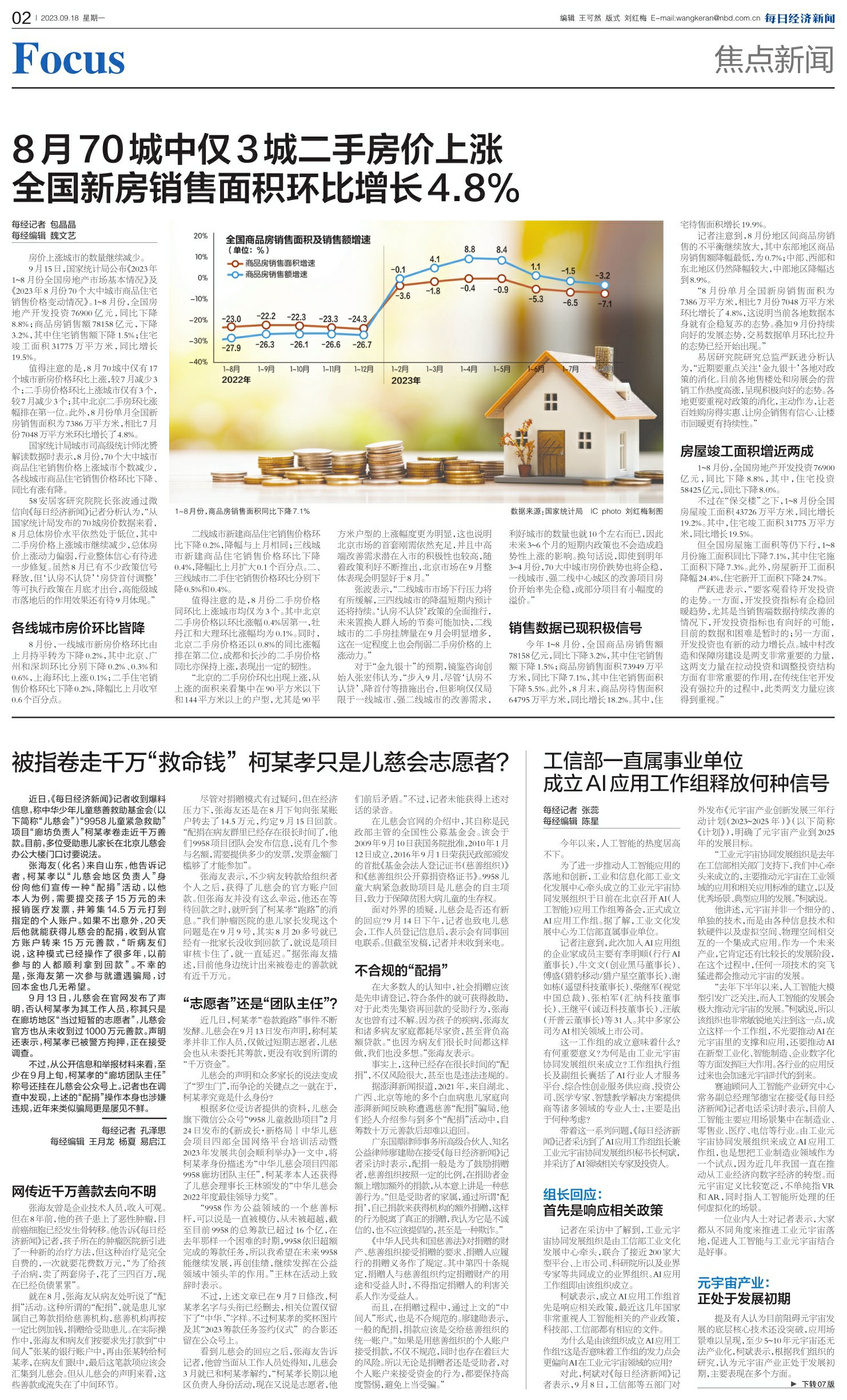 8月70城中仅3城二手房价上涨 全国新房销售面积环比增长4.8%