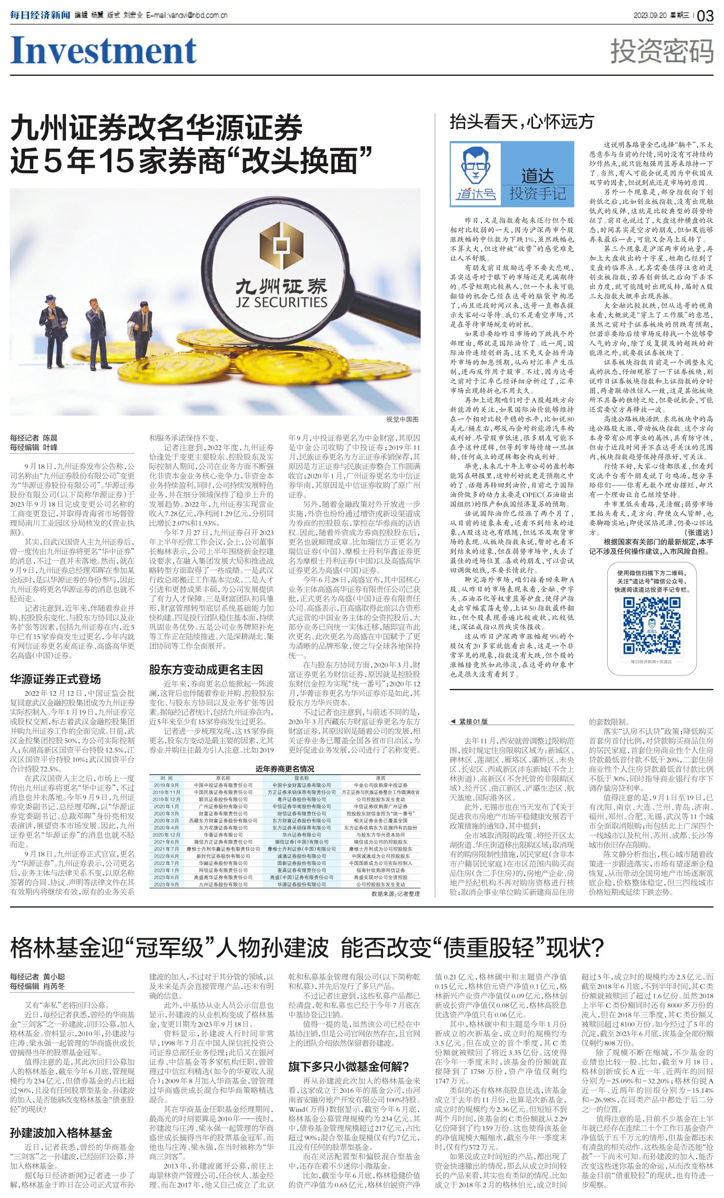 九州证券改名华源证券 近5年15家券商“改头换面”