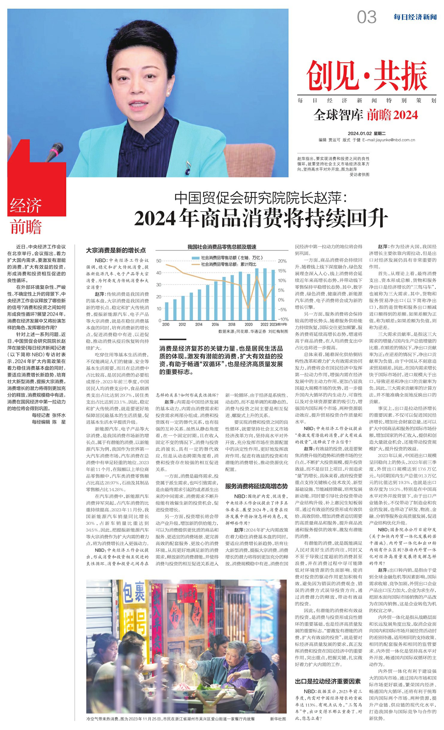 中国贸促会研究院院长赵萍:2024年商品消费将持续回升