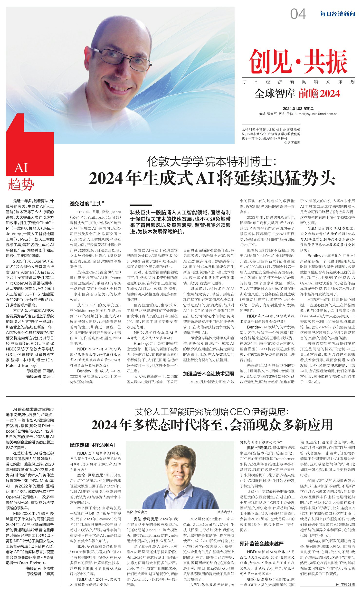 伦敦大学学院本特利博士:2024年生成式AI将延续迅猛势头