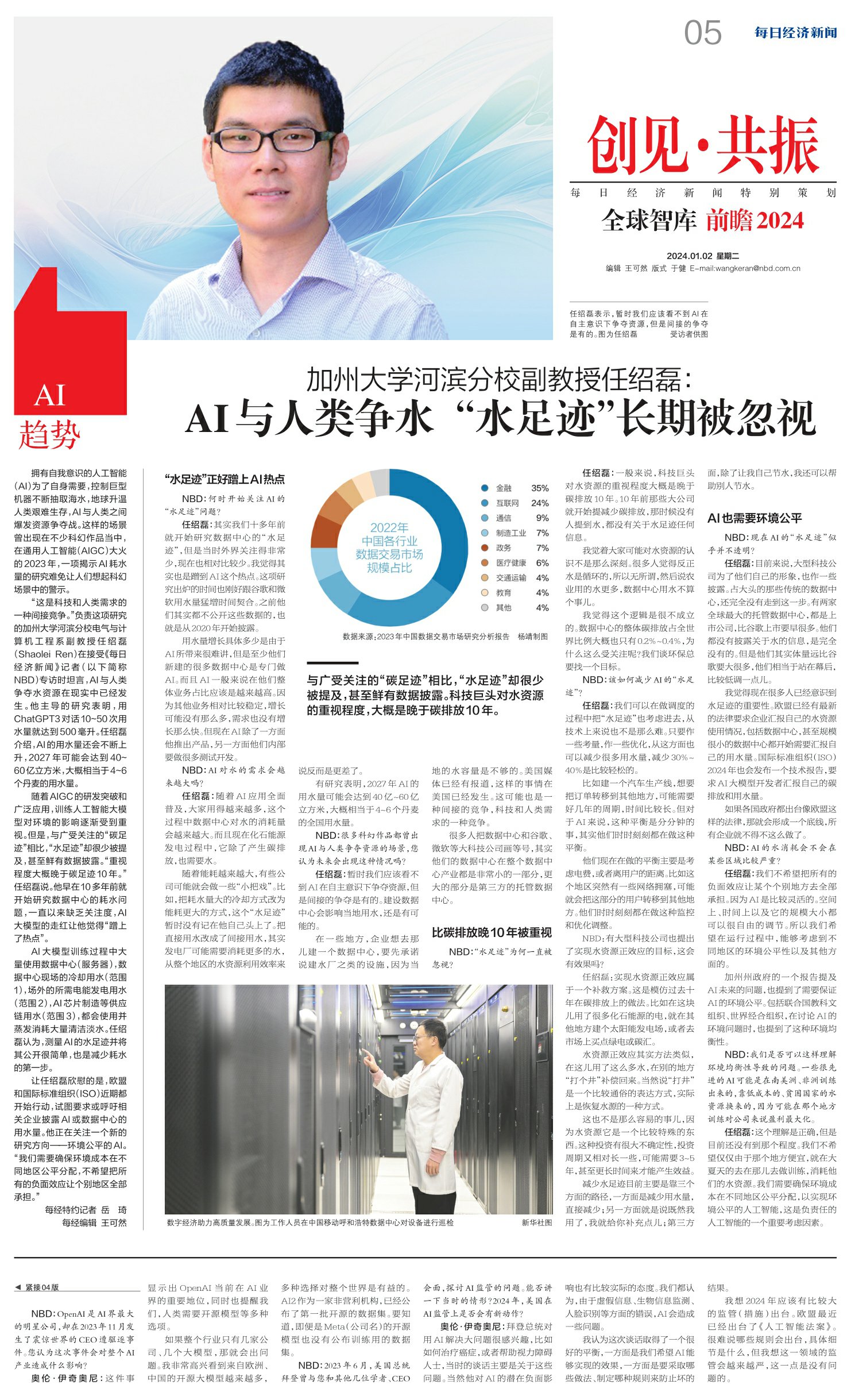 加州大学河滨分校副教授任绍磊:AI与人类争水“水足迹”长期被忽视