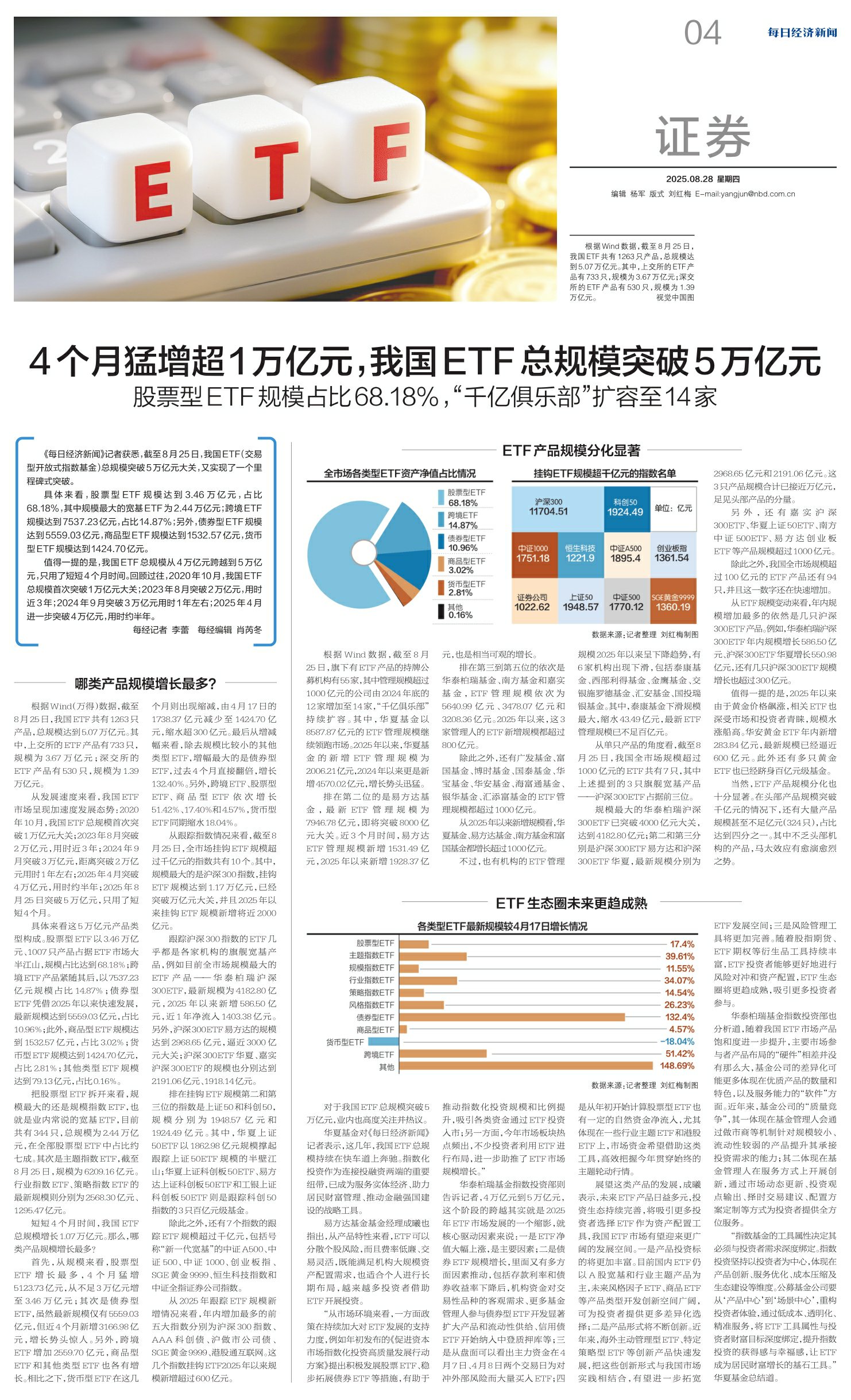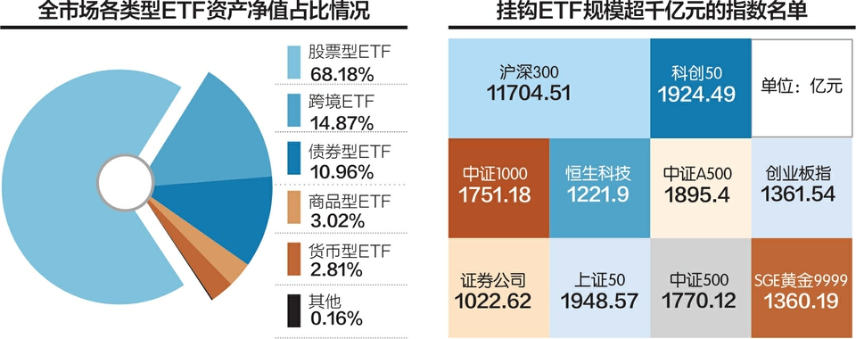 股票型ETF规模占比68.18%,“千亿俱乐部”扩容至14家