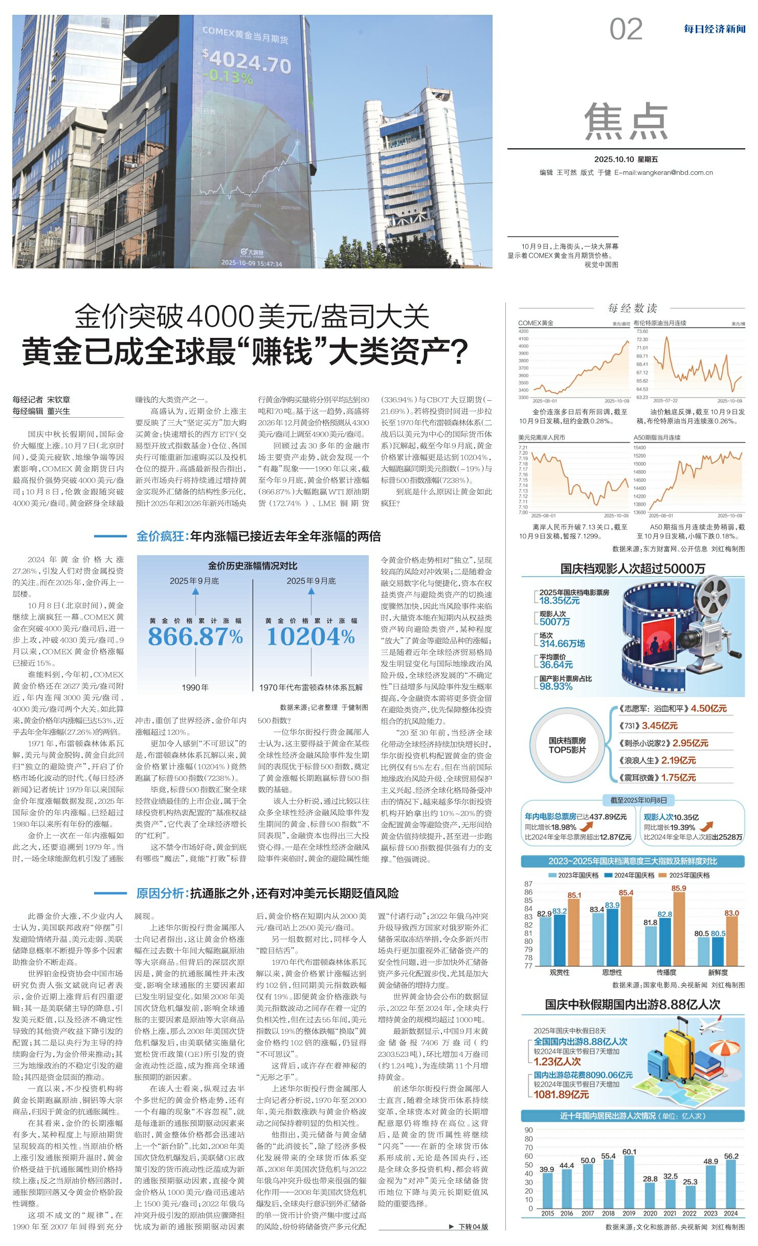金价突破4000美元/盎司大关 黄金已成全球最“赚钱”大类资产?