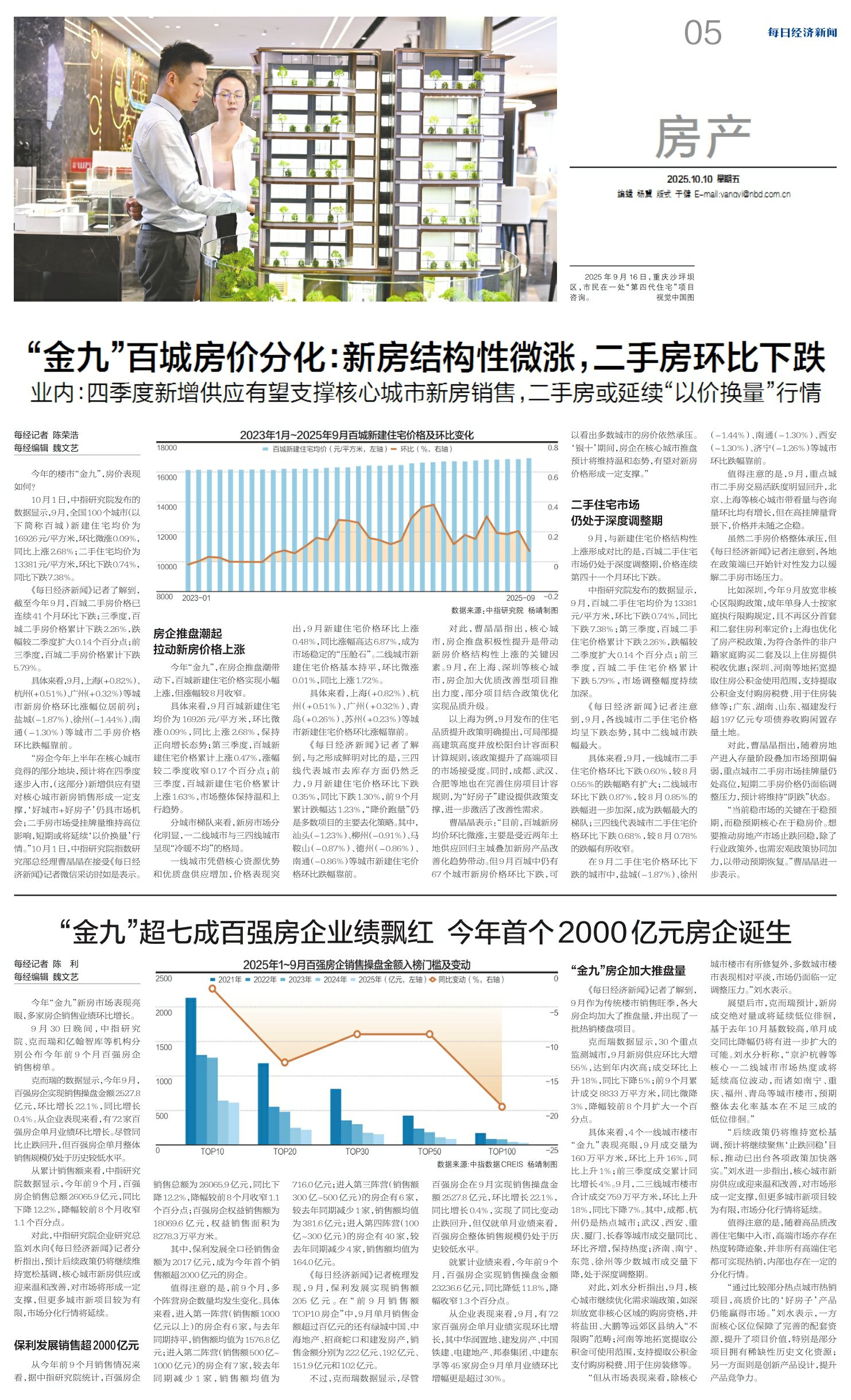 “金九”超七成百强房企业绩飘红 今年首个2000亿元房企诞生