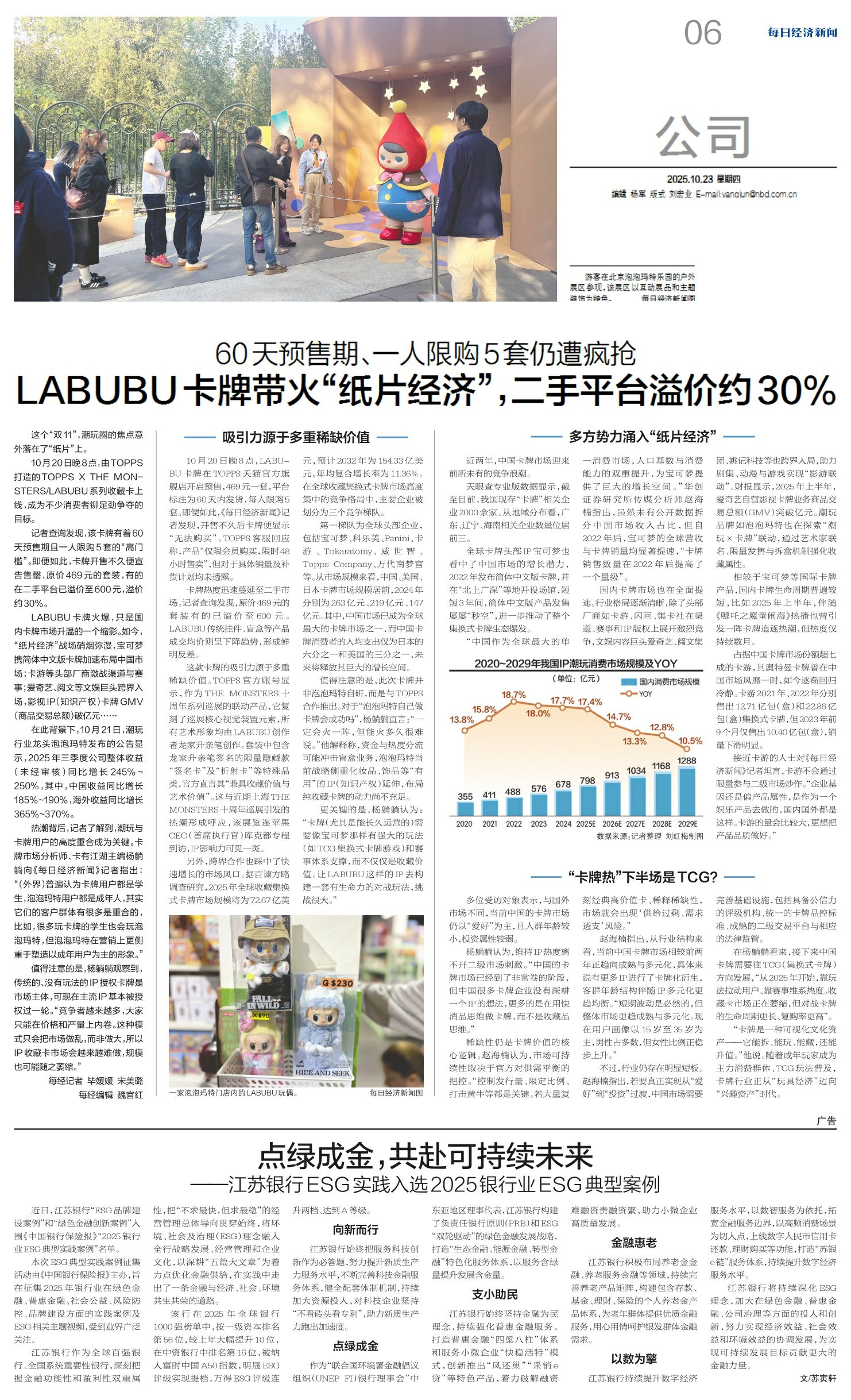 LABUBU卡牌带火“纸片经济”,二手平台溢价约30%
