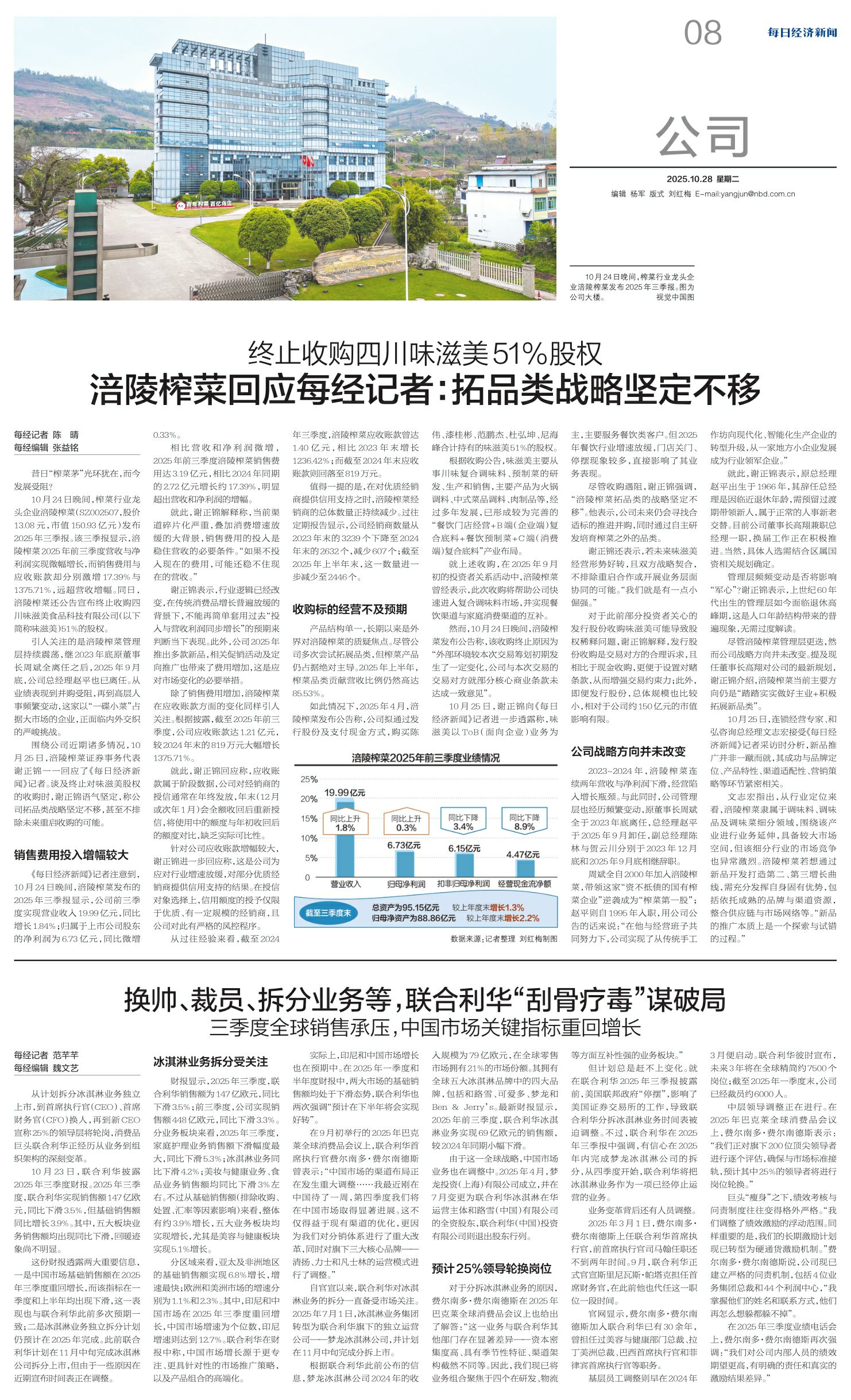 终止收购四川味滋美51%股权 涪陵榨菜回应每经记者:拓品类战略坚定不移