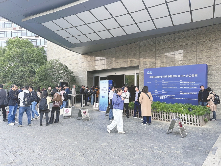 8时过后,集采现场入口签到处逐渐被挤满。每当一位企业代表签到完毕、上楼递交材料,围观的人群便又会加入新一轮的低声交流和揣测:对今年能否中标有何预期?此前文件中强调的“锚点价”“临床认可度”会如何反映在最终结果里?中标能给企业带来多少利润……