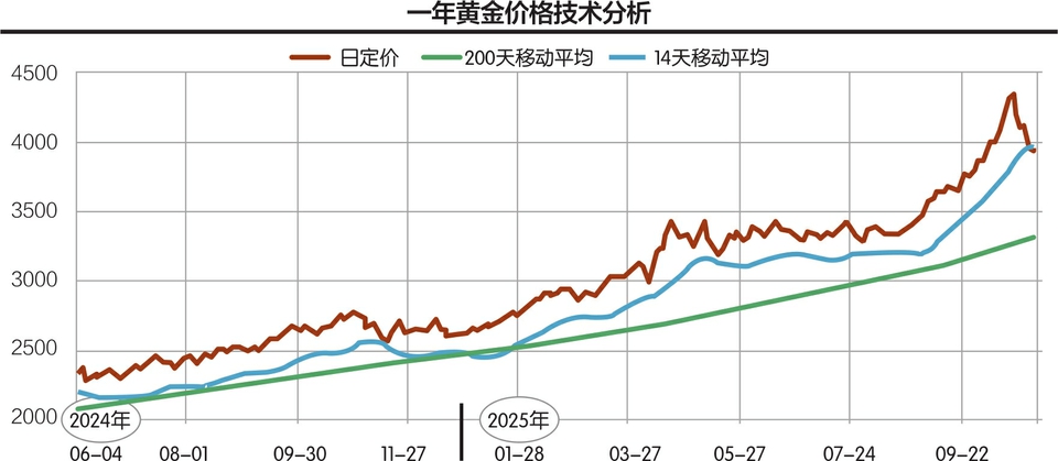 记者注意到,2024年以来,黄金价格呈现明显阶梯式上涨趋势。2024年初,国际金价在2100美元/盎司附近震荡,如今则位于4000美元/盎司附近。