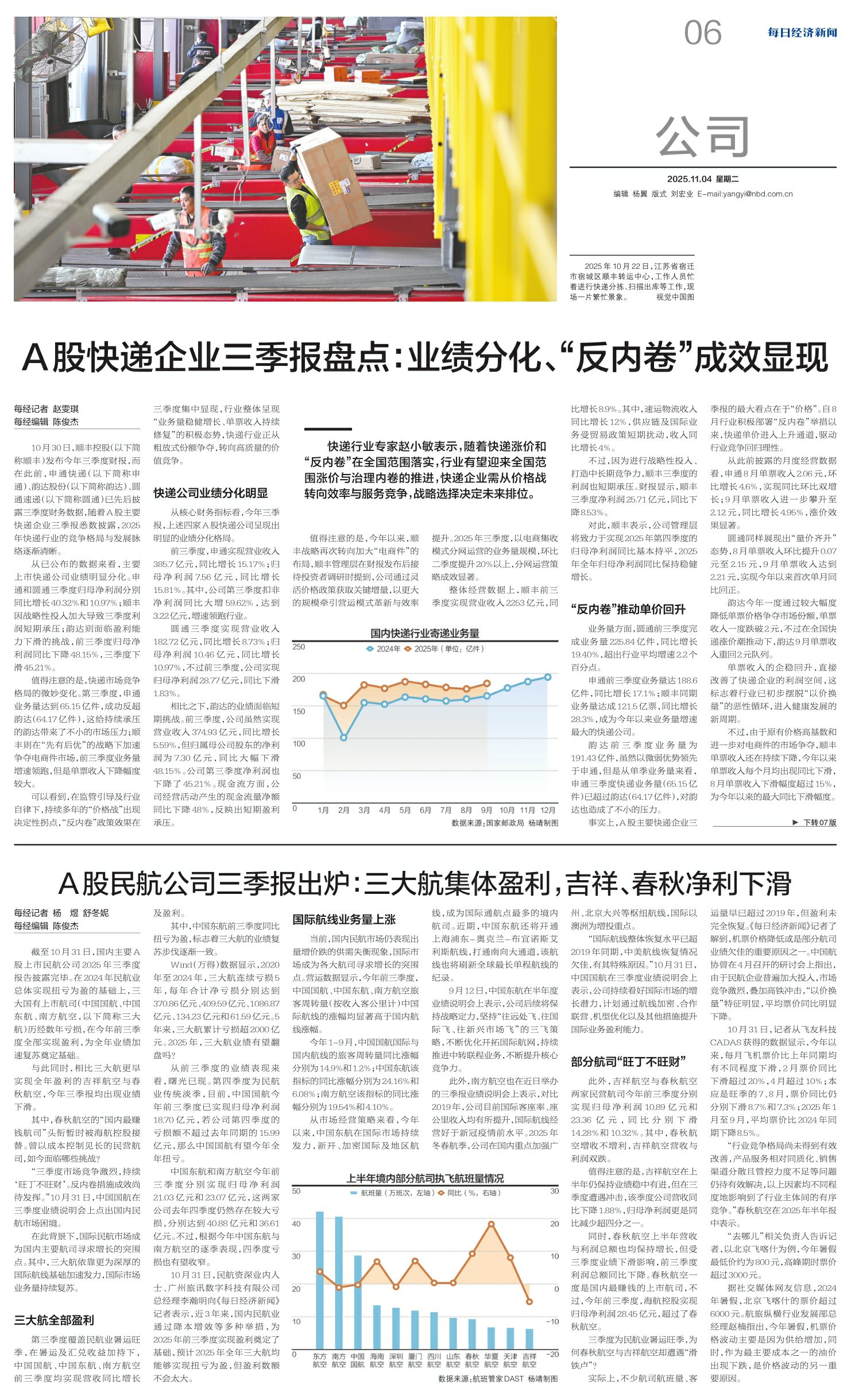 A股快递企业三季报盘点:业绩分化、“反内卷”成效显现