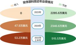 业绩方面,安序源科技2023年、2024年和2025年上半年的收入分别为0、47.9万美元和53.2万美元。同期,公司分别录得亏损2285.6万美元、2346.6万美元和515.5万美元。也就是说,安序源科技在过去两年半的时间内累计亏损了5147.7万美元。