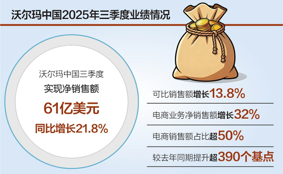 11月20日晚间,沃尔玛发布2026财年三季度业绩。其中,沃尔玛中国2026财年三季度实现净销售额61亿美元,同比增长21.8%;电商业务净销售额增长32%。2026财年三季度,山姆会员商店继续保持强劲的增长势头,交易单量呈双位数增长。在过去12个月,山姆在中国增加8家新店(含本季度新增1家)。