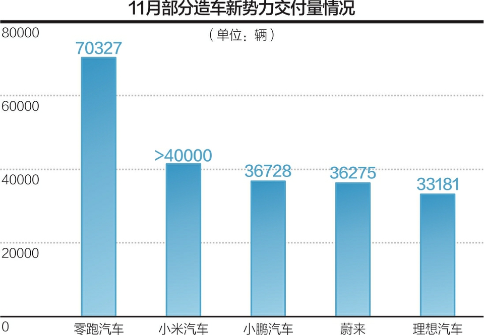 11月,造车新势力方面,销量上紧随零跑汽车的是小米汽车。