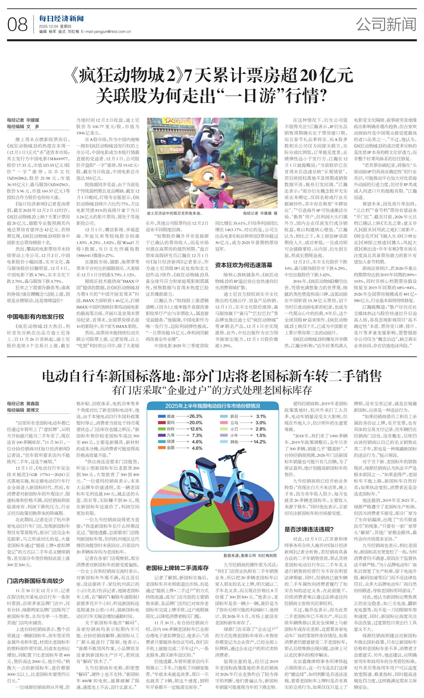 《疯狂动物城2》7天累计票房超20亿元 关联股为何走出“一日游”行情?