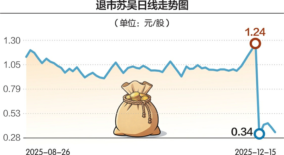 因连续多年财务造假被勒令退市的江苏吴中股票于2025年12月9日进入退市整理期。退市整理期至12月29日结束。从12月9日开盘到现在,江苏吴中股价累计下跌超过70%。