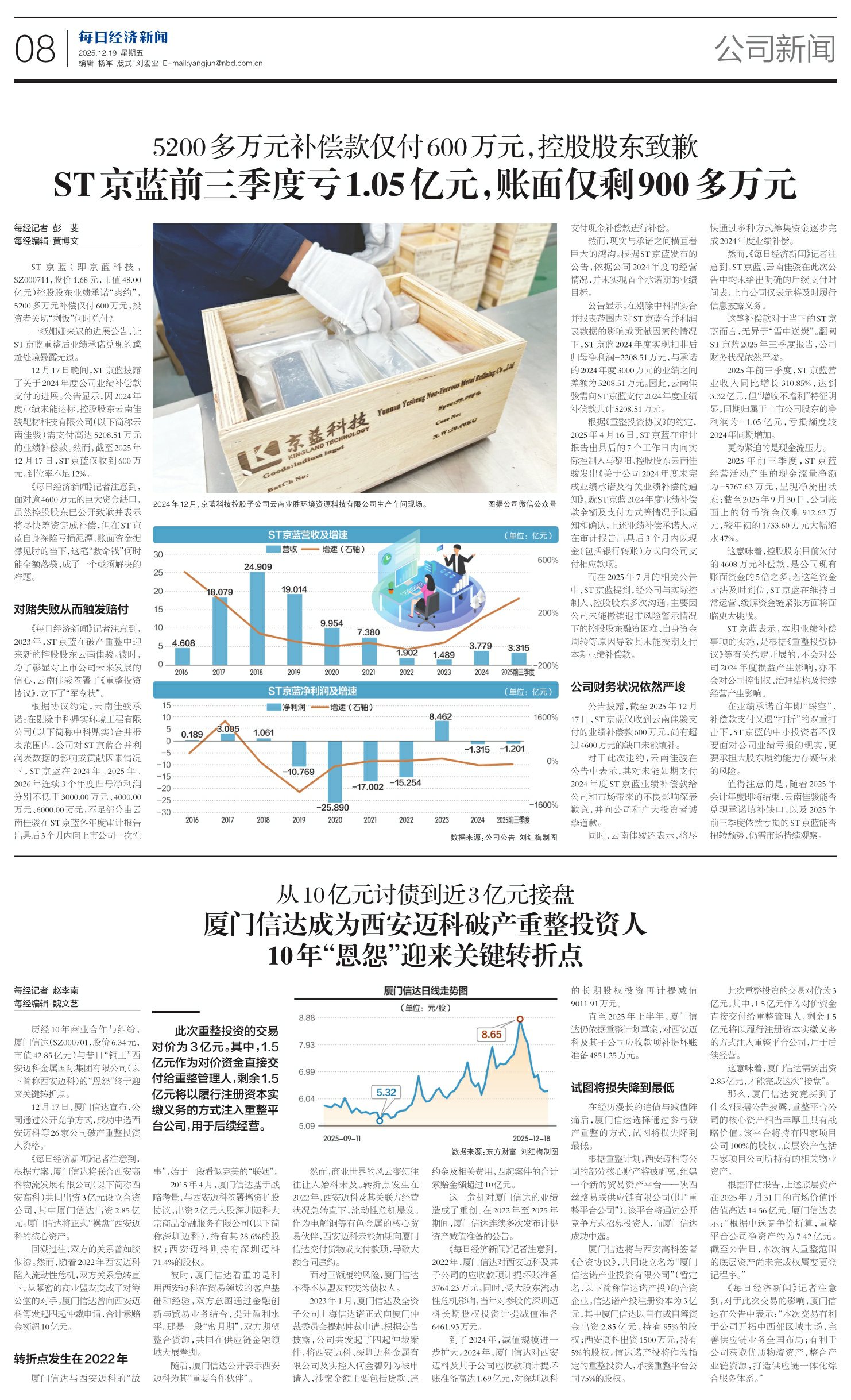 ST京蓝前三季度亏1.05亿元,账面仅剩900多万元