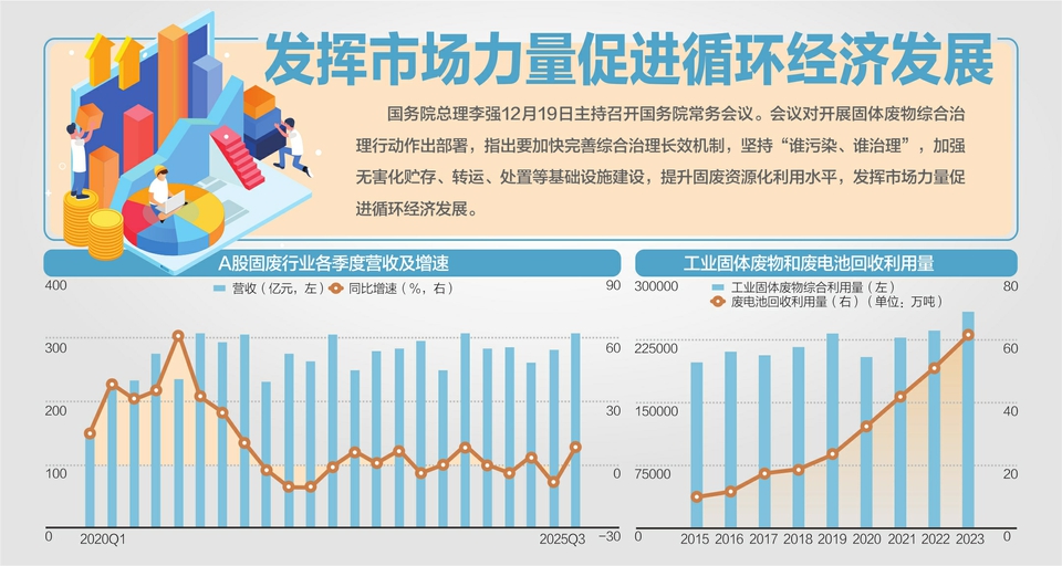 记者注意到,此次国务院常务会议明确指出,要加快完善综合治理长效机制,坚持“谁污染、谁治理”,加强无害化贮存、转运、处置等基础设施建设,提升固废资源化利用水平,发挥市场力量促进循环经济发展。
