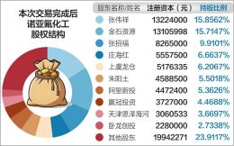 本次交易完成后,金石资源将正式跻身诺亚氟化工第二大股东。值得注意的是,公告显示,标的公司的股权结构相对分散,目前第一大股东的持股比例为15.8562%。这意味着,金石资源作为二股东,其持股比例与大股东的差距仅为0.1415个百分点。