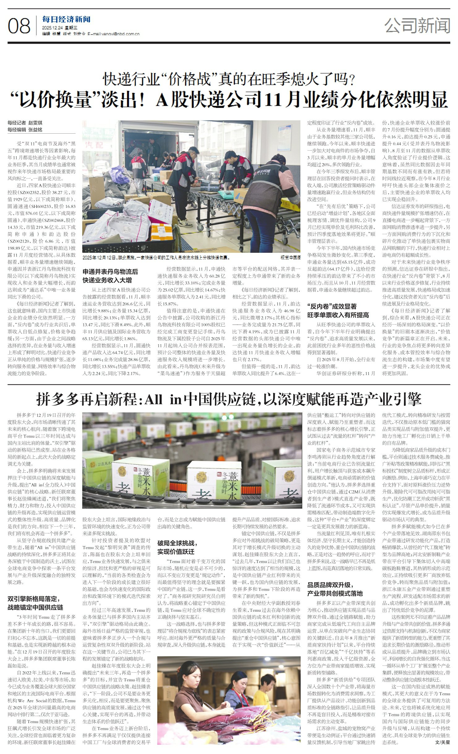 “以价换量”淡出!A股快递公司11月业绩分化依然明显