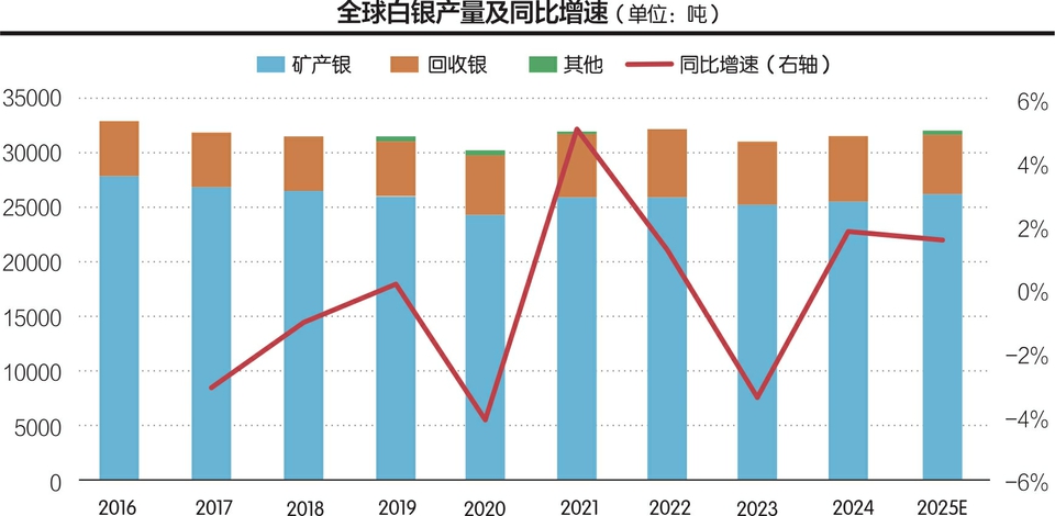 “这些特性使得白银成为工业生产中关键的原材料之一,工业需求在白银总需求中占据重要位置,近年来占比稳定在50%以上。”中信建投称,根据世界白银协会数据,2024年白银的总需求达到1164百万盎司,预计2025年将维持在1148.3百万盎司的高位。