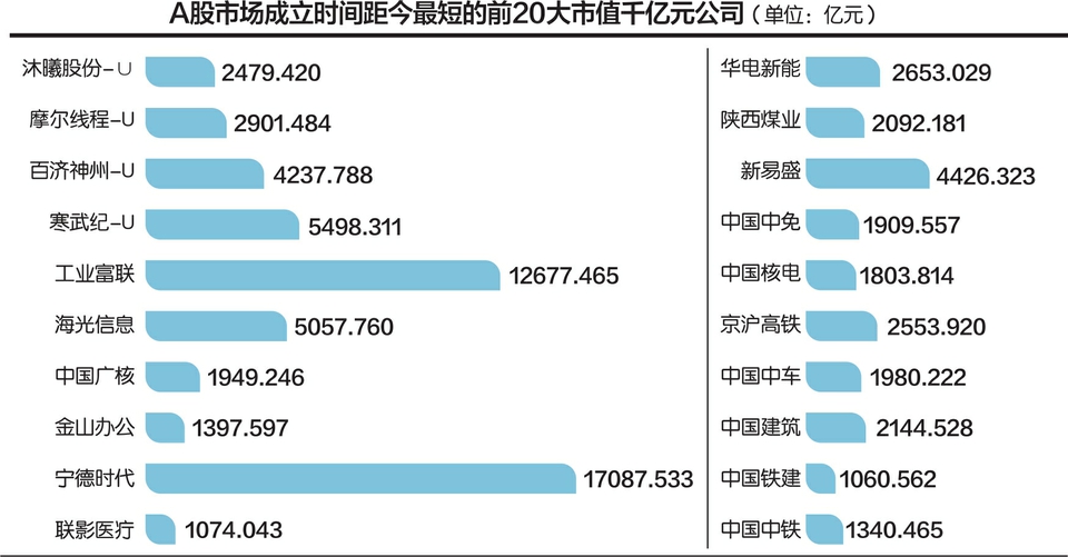 值得关注的是,截至2025年12月26日收盘,A股“千亿市值俱乐部”总共有179家上市公司,成立于2020年的摩尔线程、沐曦股份成为A股市场“最年轻”的“千亿市值”企业代表。