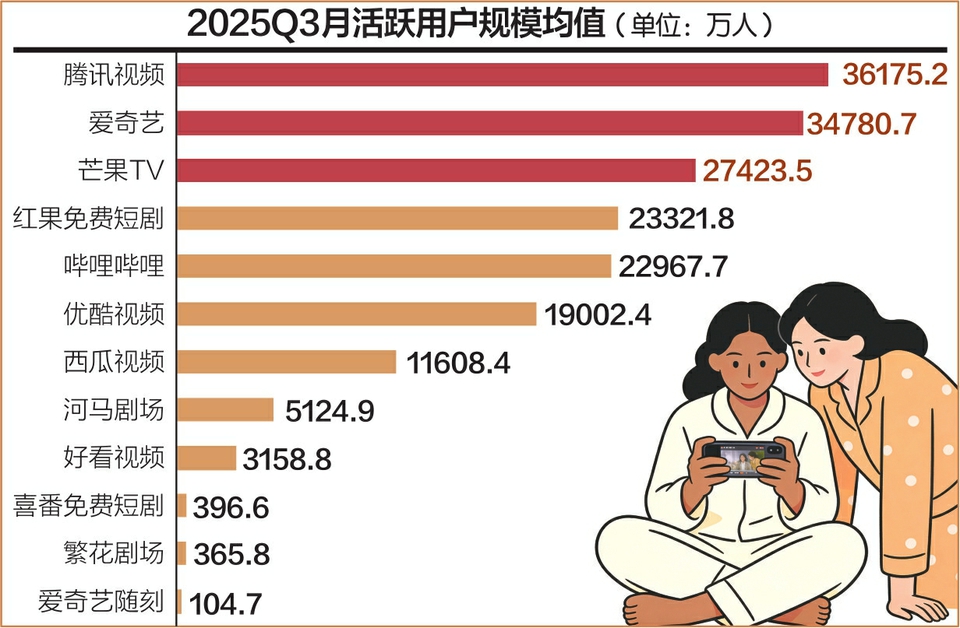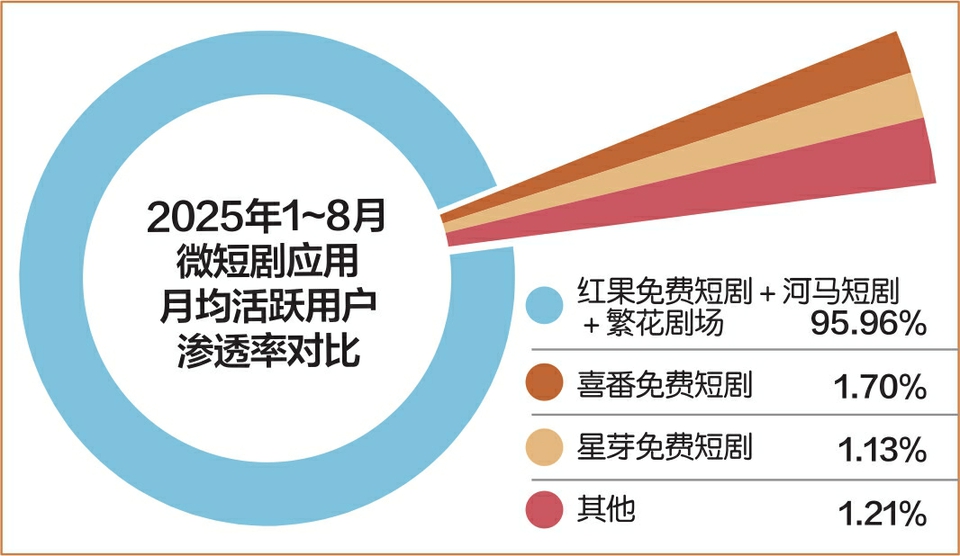 《中国微短剧行业发展白皮书(2025)》显示,红果免费短剧(以下简称红果)与河马剧场、繁花剧场两大头部应用共同抢占超过95%的月均活跃用户渗透率。Quest Mobile向记者提供的数据显示,2025年前三季度,河马和繁花的月活用户规模加起来都不足红果的25%。“很多长剧平台觉得短剧只是长剧的延伸或者补充,但红果真的相信短剧是未来。整个字节跳动是不惜一切去做,红果的月活跃用户目标是7.5亿。”茶茶坦言。在这种背景下,不少版权方选择与红果签约独家合作。