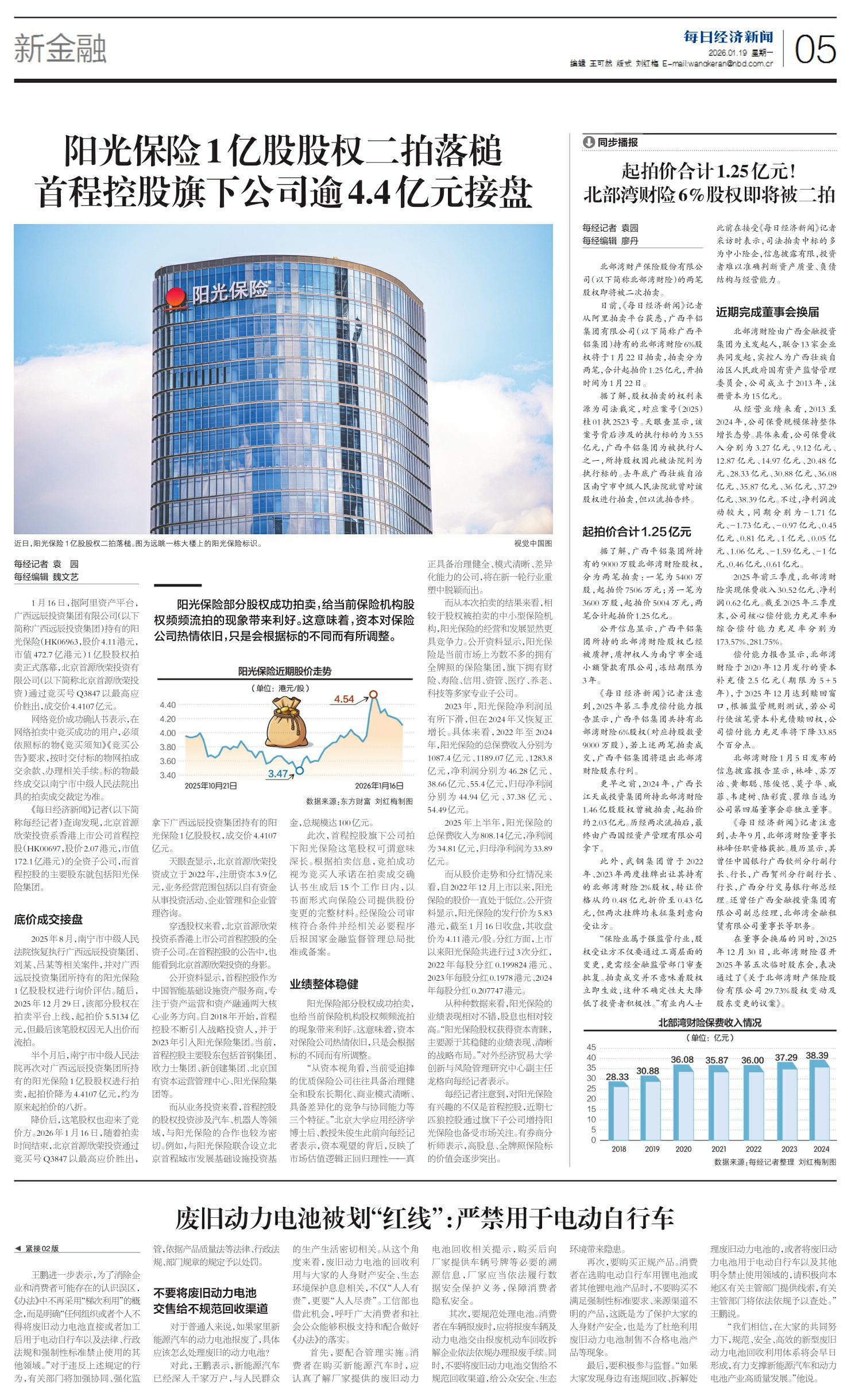 阳光保险1亿股股权二拍落槌 首程控股旗下公司逾4.4亿元接盘