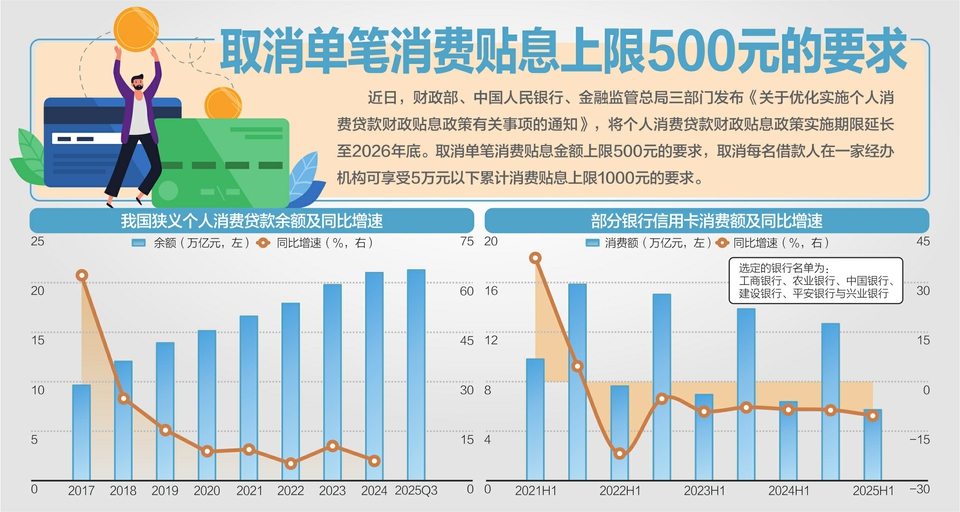 此外,此次政策优化取消了单笔消费贴息金额上限500元的要求,也取消了每名借款人在一家经办机构可享受5万元以下累计消费贴息上限1000元的要求。维持每名借款人在一家经办机构可享受累计消费贴息上限每年3000元的要求不变。董希淼指出,这有助于增强贴息政策对消费者的吸引力,提升消费者主动使用贴息政策扩大消费、改善生活的动力,进一步发挥贴息政策效用。