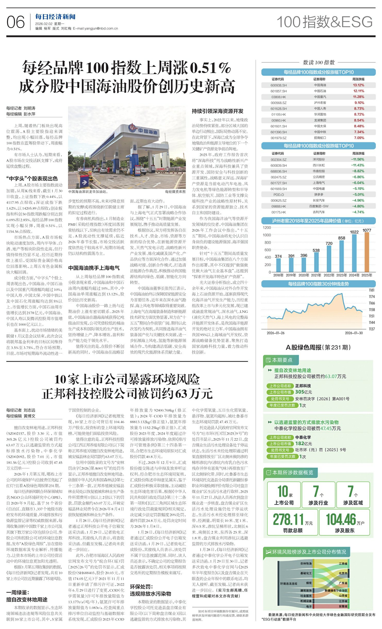 每经品牌100指数上周涨0.51% 成分股中国海油股价创历史新高