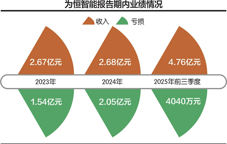 业绩方面,报告期内,为恒智能分别实现收入2.67亿元、2.68亿元和4.76亿元。同期,公司亏损金额分别约为1.54亿元、2.05亿元和4040万元,合计亏损近4亿元。