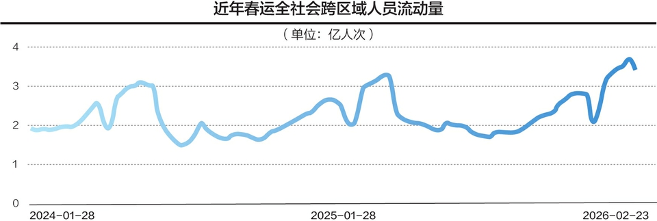 交通运输部数据显示,2026年春运前20天,预计全社会跨区域人员流动量累计达50.8亿人次,日均2.5亿人次,比2025年同期增长5.6%,创历史同期新高。