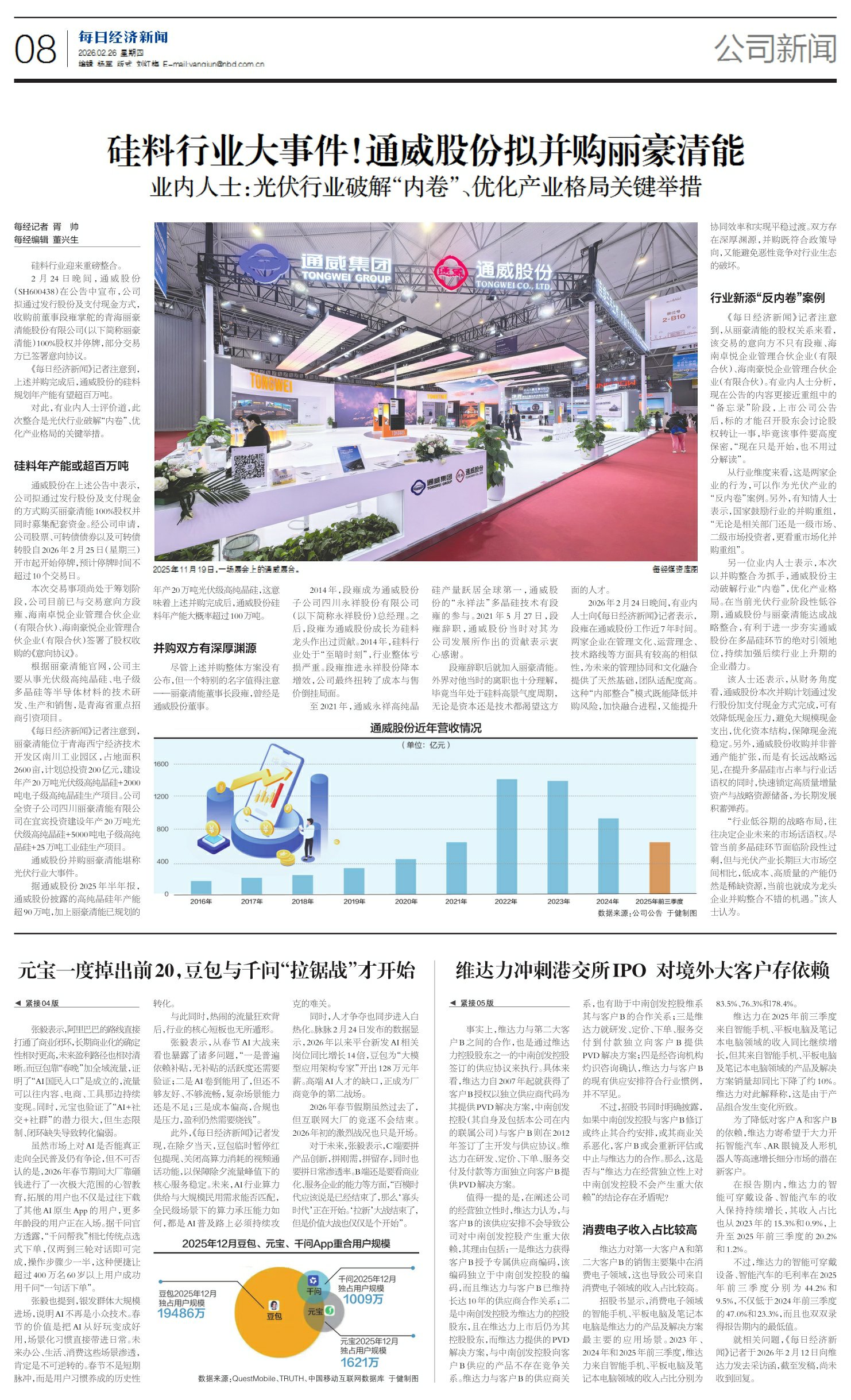 硅料行业大事件! 通威股份拟并购丽豪清能