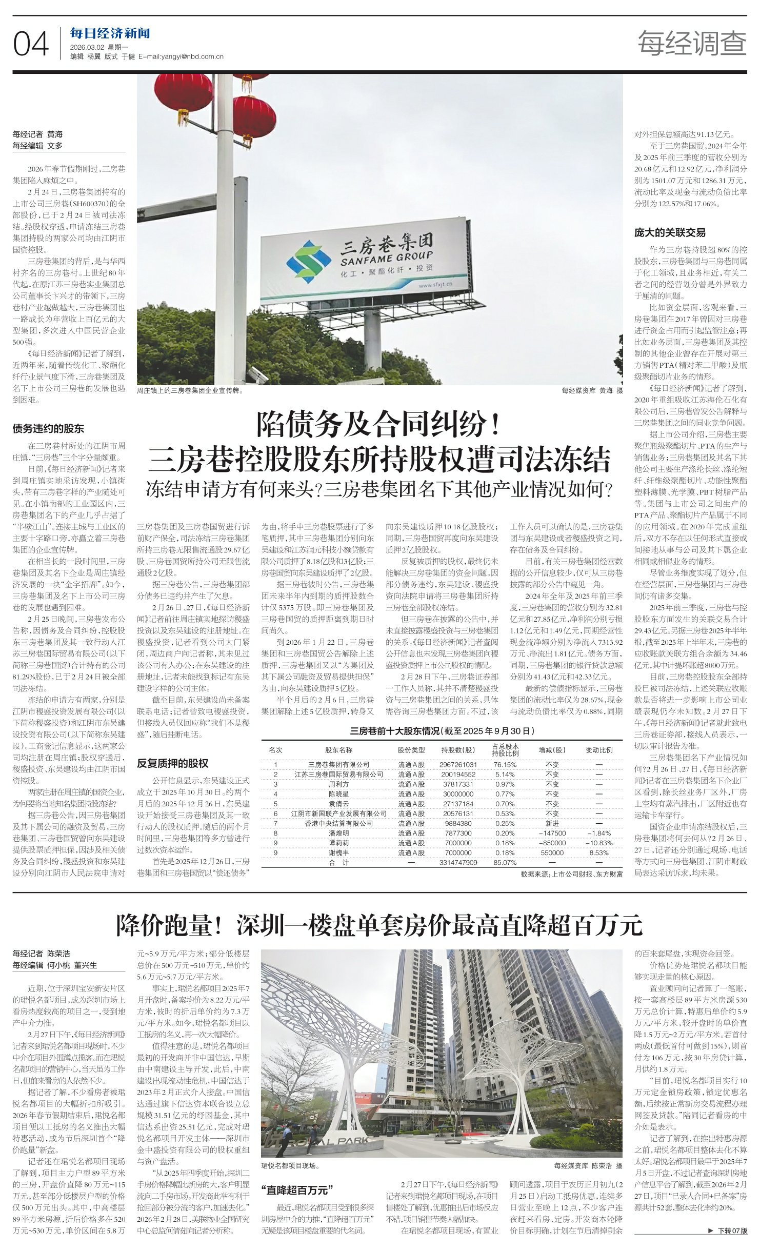 陷债务及合同纠纷! 三房巷控股股东所持股权遭司法冻结