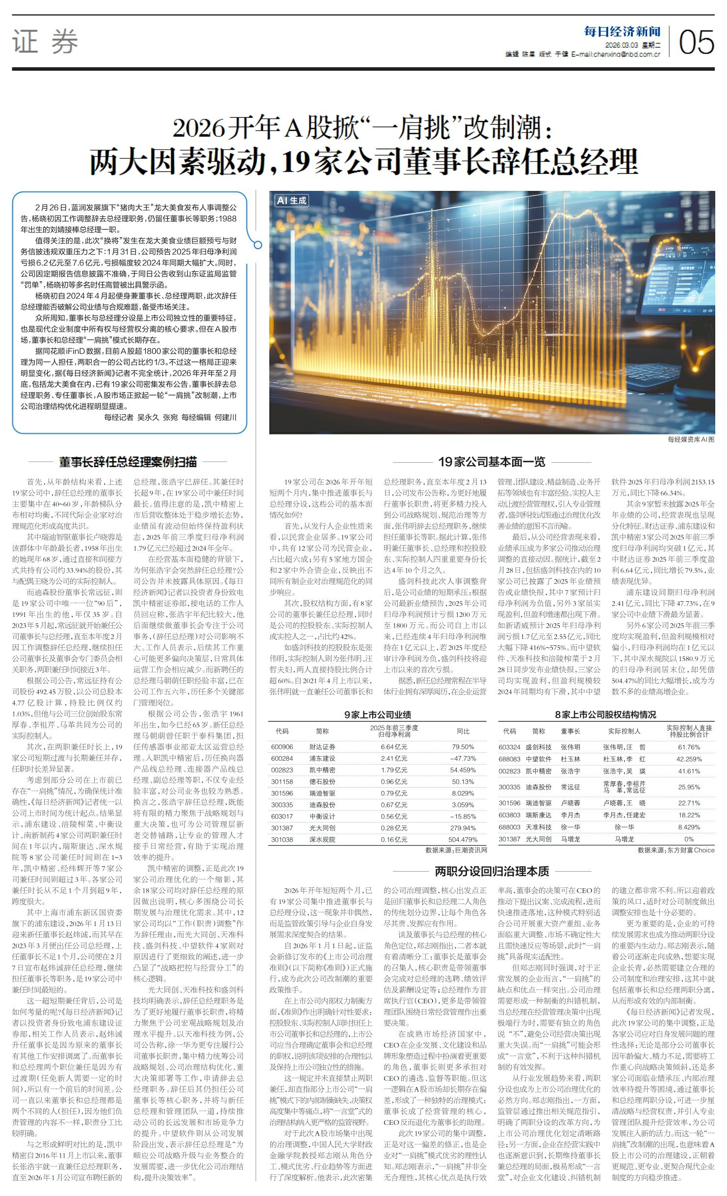 2026开年A股掀“一肩挑”改制潮:两大因素驱动,19家公司董事长辞任总经理