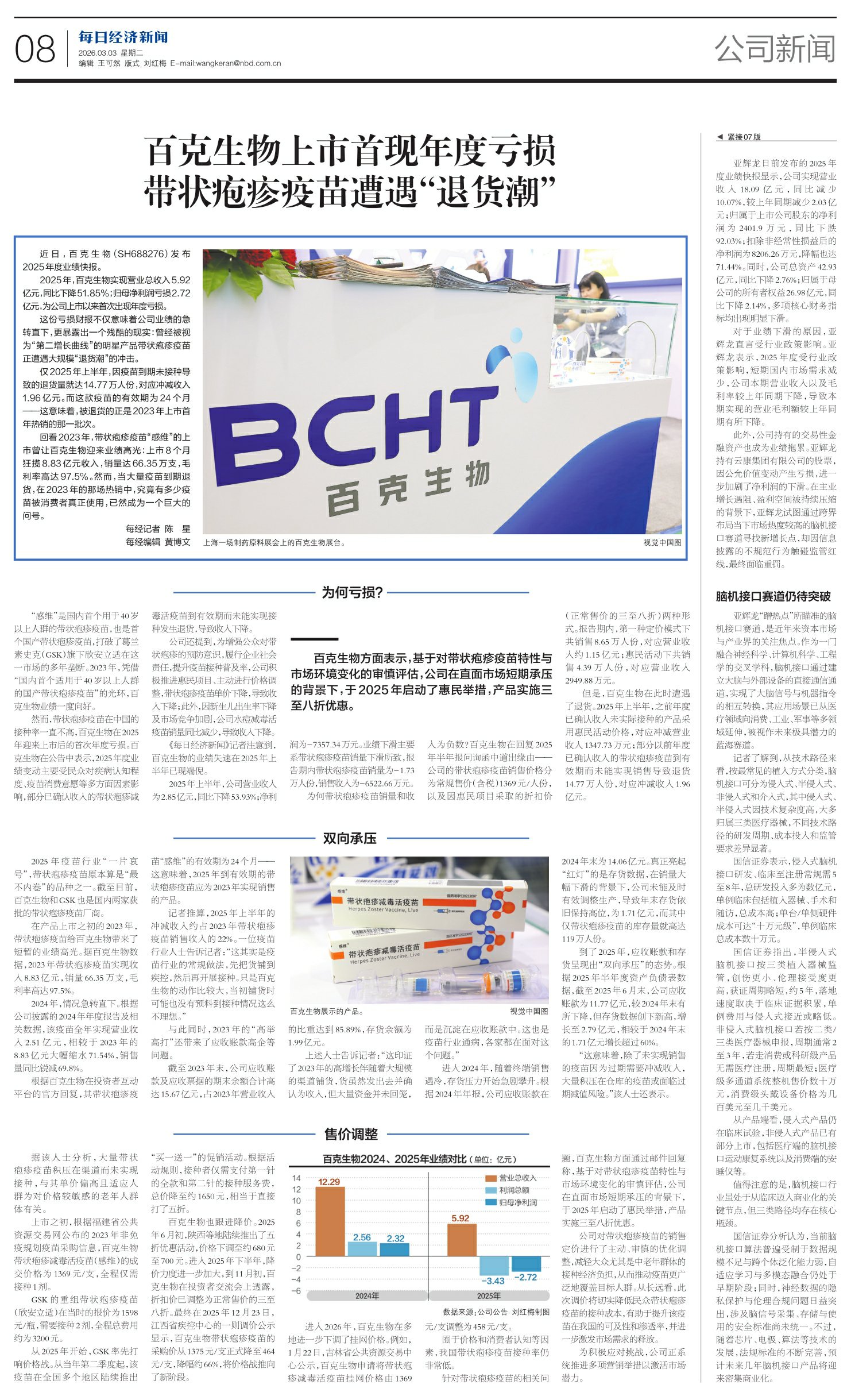 百克生物上市首现年度亏损 带状疱疹疫苗遭遇“退货潮”