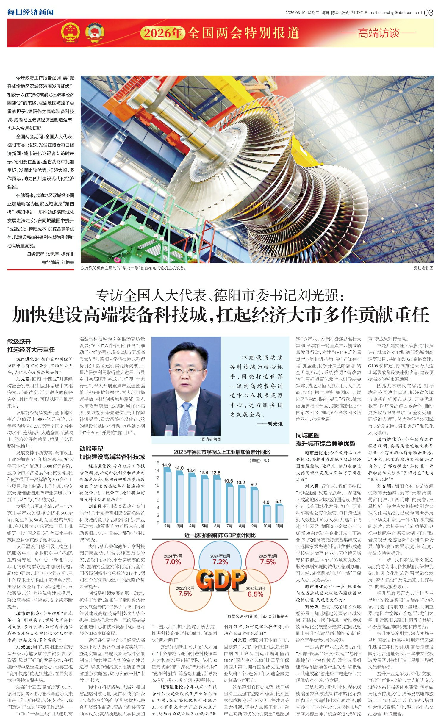 专访全国人大代表、德阳市委书记刘光强:加快建设高端装备科技城,扛起经济大市多作贡献重任