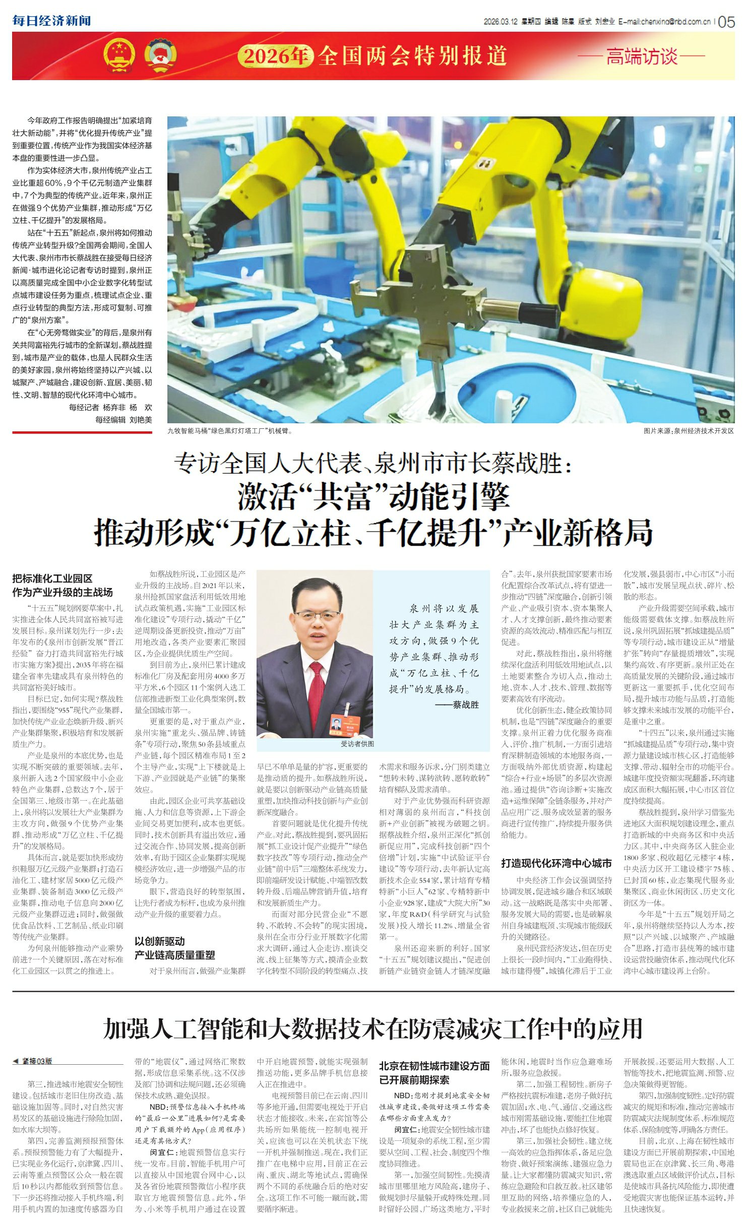 专访全国人大代表、泉州市市长蔡战胜:激活“共富”动能引擎推动形成“万亿立柱、千亿提升”产业新格局